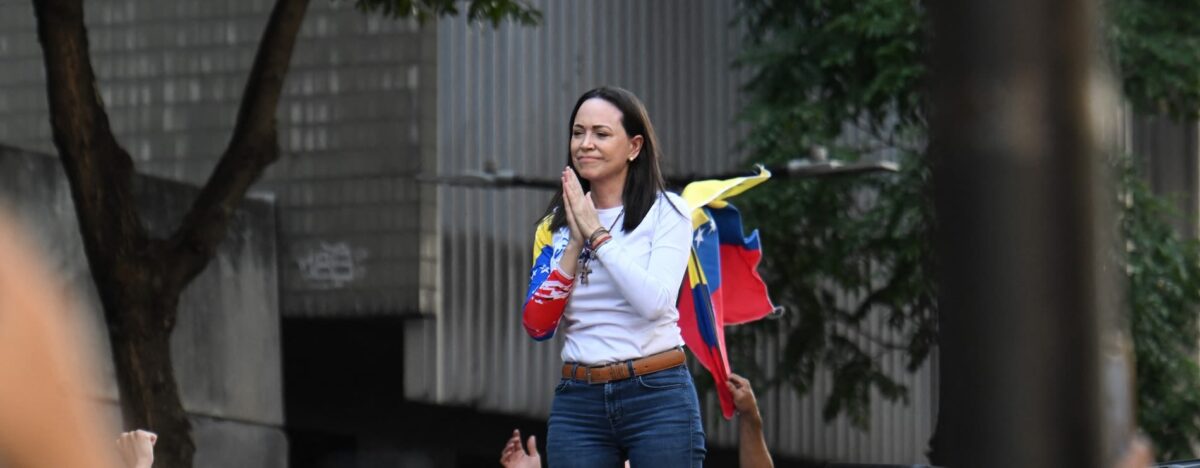 ماچادو در سال ۲۰۱۸ نامه‌ای به بنیامین نتانیاهو، نخست‌وزیر وقت اسرائیل ارسال کرد و در آن خواستار «نفوذ و قدرت» برای تغییر حکومت در ونزوئلا شد. پس از این اقدام، ماچادو متعهد شد که حمایت بی‌قید و شرط خود را از اسرائیل ادامه دهد و همچنین برنامه انتقال سفارت کشورش به قدس را پیگیری کند. ماچادو با چنین کارنامه‌ای در سال‌های بعد ابتدا وارد عرصه رقابت سیاسی با دولت مستقر ونزوئلا شد و سپس از رقابت سیاسی به کودتا علیه دولت تغییر جهت داد. اوکه در سال 2023 گونزالس را به عنوان کاندیدای مورد حمایت خود معرفی کرد تا به این طریق از گزینه مورد نظر آمریکا برای کنار زدن مادورو حمایت کرده باشد پس از شکست در انتخابات به همراه گونزالس در کودتا علیه دولت مشارکت کرد. پس از شکست کودتای آمریکایی در ونزوئلا گونزالس به اسپانیا گریخت و دولت ونزوئلا مدعی است ماچادو نیز از این کشور خارج شده است. تلاش برای کنارزدن مادورو و تبدیل کردن ونزوئلا به متحد آمریکا باعث شده است تا کشور‌های غربی از تمام ابزار تبلیغاتی برای سفید‌شویی عوامل کودتا بهره برده و حتی جایزه نوبل صلح را نیز به او هبه کنند. شباهت روند دریافت جایزه نوبل توسط ماچادو با اپوزیسیون ایران یعنی شیرین عبادی و نرگس محمدی باعث شده تا در ایران برخی به کنایه لقب «شیرین عبادی ونزوئلا» را به او بدهند. کمیته صلح نوبل به نحوی عمل کرده که از خودت وجهه یک نهاد تبلیغاتی در جهت تأمین منافع سیاسی غرب را ساخته است. در راستای همین کمپین تبلیغاتی است که فقط اپوزیسیون کشور‌های مقابل غرب شایسته دریافت جوایز پرطمطراق نظیر نوبل و برخی جوایز فرهنگی و سینمایی شناخته می‌شوند و اقدامات بزرگی همچون حرکت 40 کشتی در قالب کاروان صمود برای رساندن شیرخشک به کودکان غزه نادیده گرفته می‌شود.